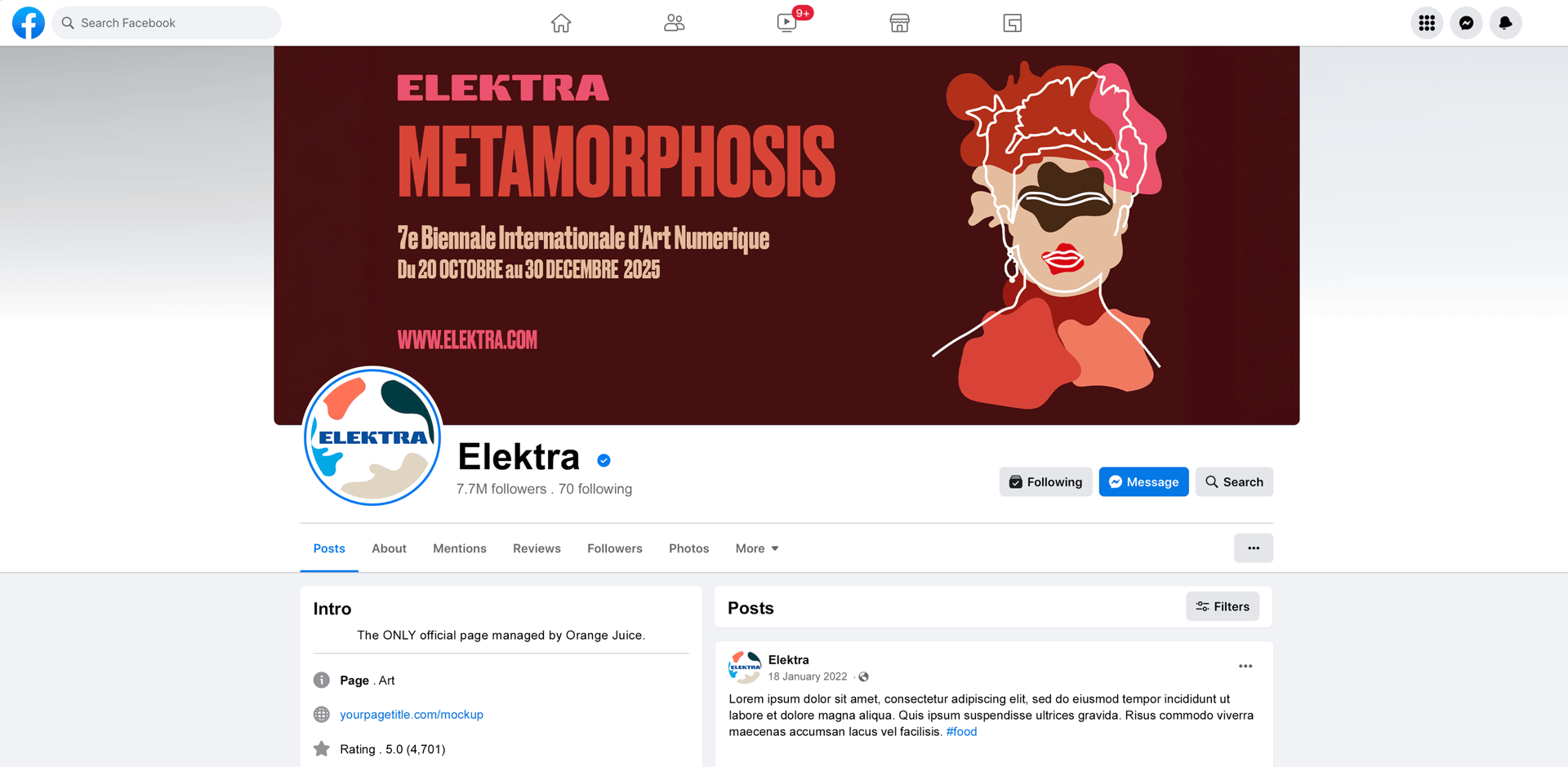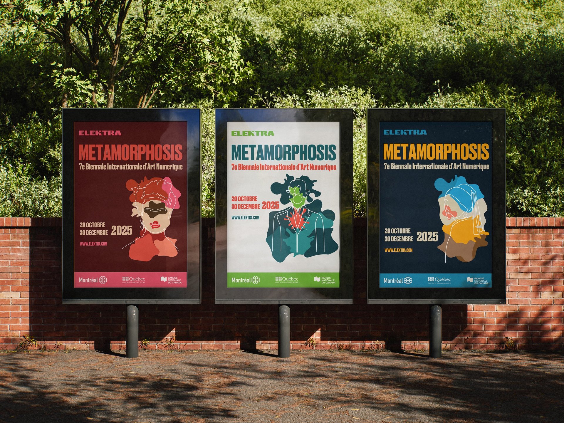 Le projet comprend une affiche urbaine impactante ainsi qu’un habillage graphique décliné pour la page Facebook du musée Elektra à Montréal.
